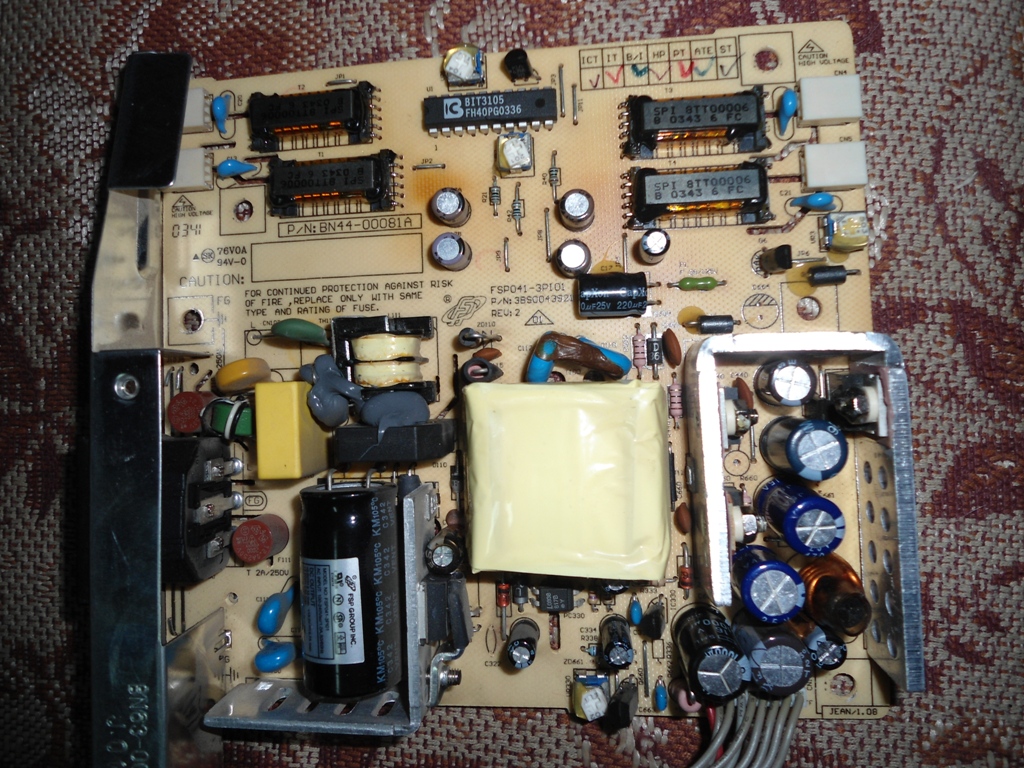 Здравствуйте.Прошу прощения если что не так, т.к в этом деле мало опыта.Есть монитор syncmaster 153v.Не включался вообще.после вскрытия обнаружил вздутые конденсаторы 2 по 10 вольт и 2 по 35 вольт, заменил на другие с такими же по характеристикам (с конденсаторами дело уже имел)Монитор включился, загорелся индикатор, но нет подсветки.Если поднести монитор к настольной лампе, то видно тусклое изображение с надписью НЕТ СИГНАЛА.Внешних механических повреждений не обнаружил.Подскажите пожалуйста откуда начать мерять.Может предохранитель какой или еще что-нибудь проверить и как? Мультиметр присутствует.