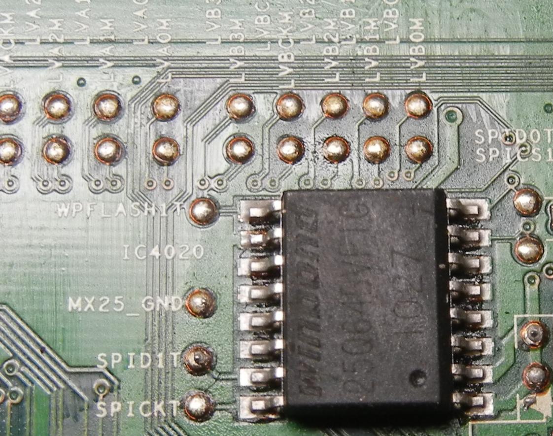 решил сегодня всетаки слизать именно прошивку с этого тела! и что у меня получилось. на ic4019(windbond 25q64bvf1g) есть признаки прошивки, а на ic4020(windbond 25q64bvf1g) - полностью пустая(FF)слил обе такое впечатление что прошивка поделена на две составляющие,потому что место для прогера как для первой так и для второй одно и тоже.