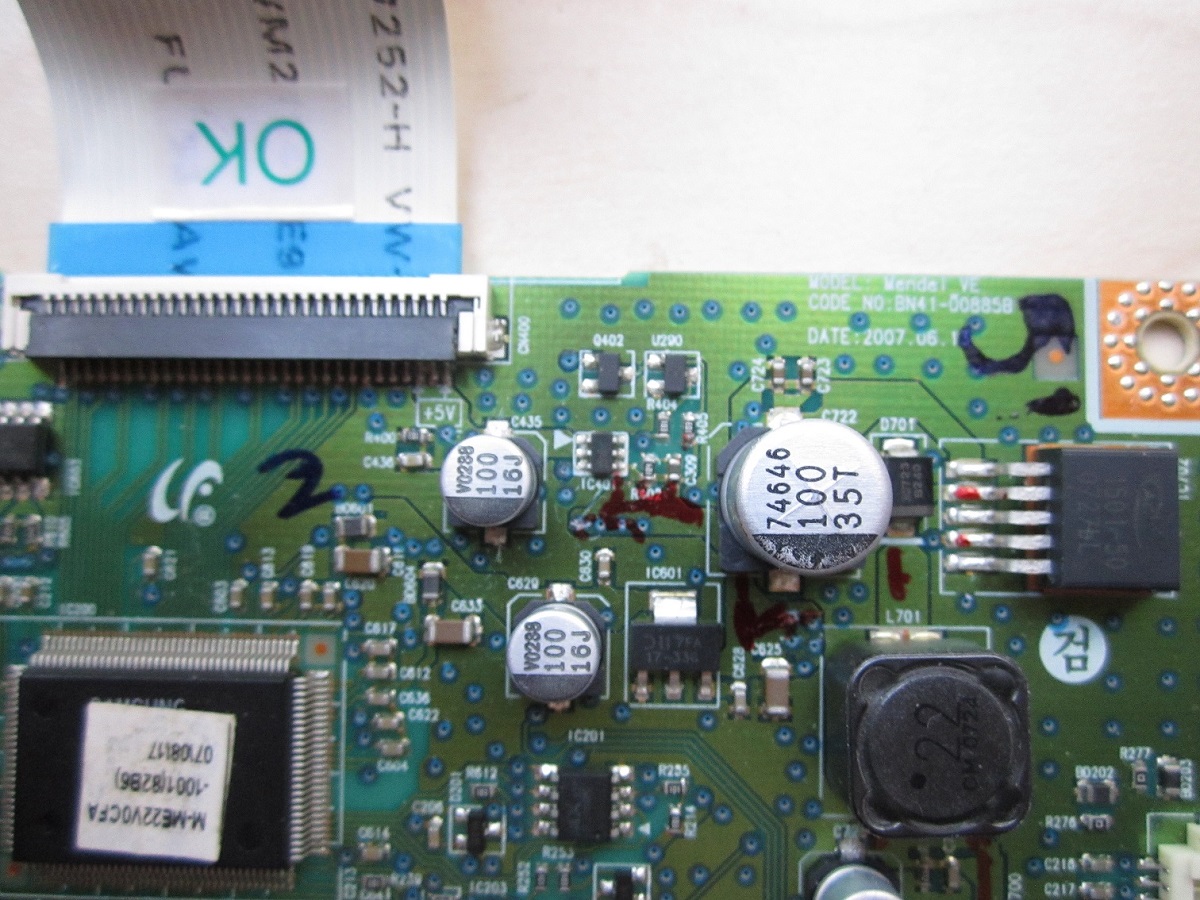 Здравствуйте форумчане.Мой монитор Samsung 223bw перестал работать.Разобрав его я увидел вздутые конденсаторы и думал что на этом ремонт закончен,но нет!.Нет 5В,оно у меня находится на материнке.По факту оно есть на приобразователе АР1501.но доходя до СМД микросхемы которая обозначена как (3ВЕСЕ)оно на выходе пропадает. Два транзистора которые обозначены как (BQ 17)имеют тоже на выходе нулевое напряжение,хотя из них 5В идёт на монитор.С микросхемы LM393M тоже нету выхода на БП и кнопку Включения.Помогите пожалуйста найти проблему и что главное не могу я найти даташит на(3ВЕСЕ)и (BQ 17).Спасибо тому кто откликнетса, вставляю фото.