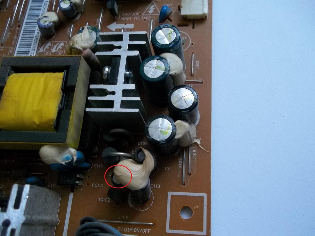Samsung 710n конденсатора на месте нет.схему не могу найти. подскажите пжлст емкость и вольтаж конденсатора С108