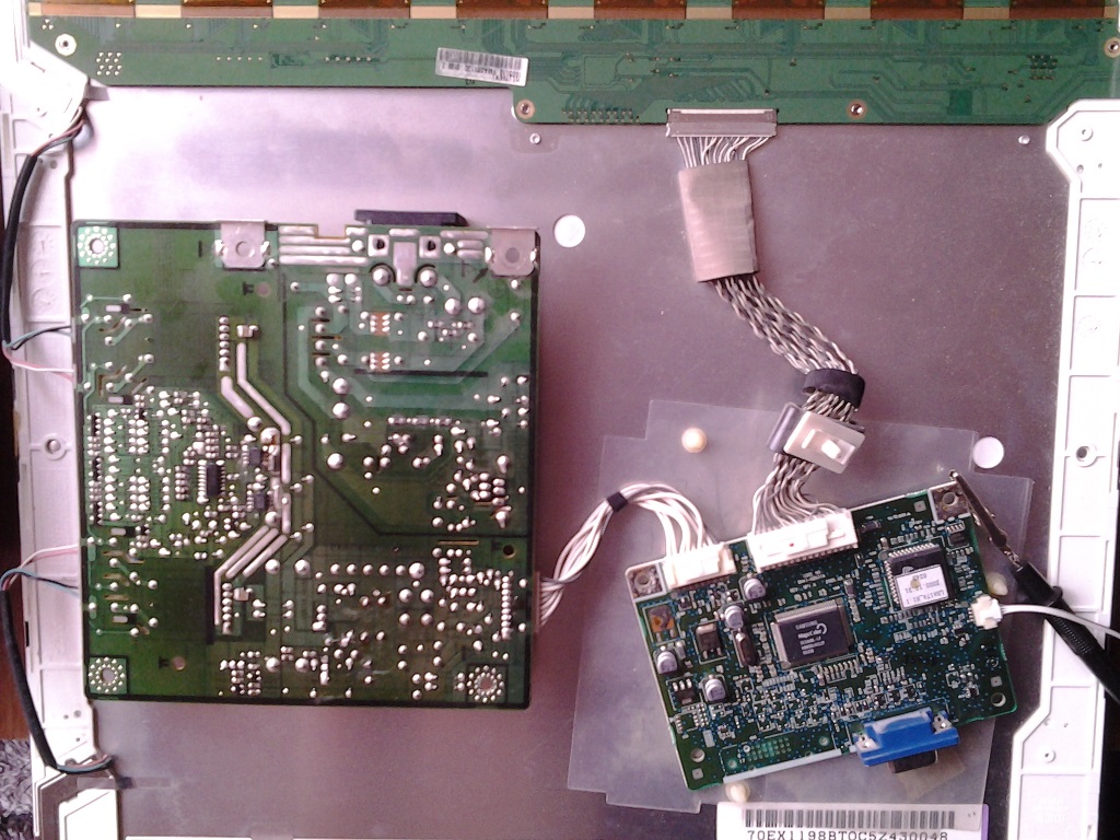 На плате матрицы надо керамические конденсаторы прозвонить на предмет пробоя, не отпаивая. |