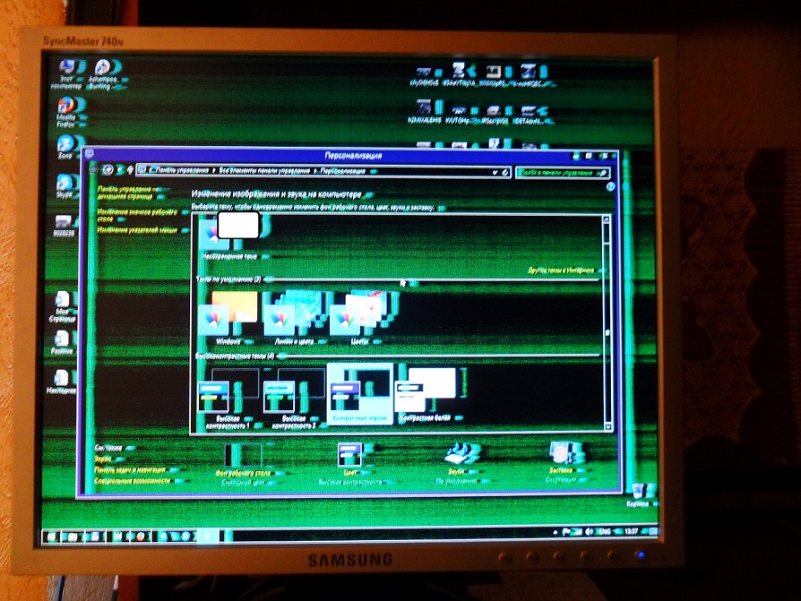 Всем доброго времени суток! На изображении монитора Samsung 740n иногда появляется дефект, фото которого я приложил. Проявляется на темных участках изображения. Это дефект монитора или проблему искать в видеокарте? Установил контрастную тему, чтобы лучше был виден дефект.