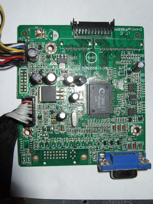 Итак решил отремонтировать монитор Viewsonic VG920. Не загорается индикатор. Перерыл весь простор интернета понял что скорее всего накрылась прошивка на Main board. У меня стоит 715G1558-1-2. Пробовал уже и ресет менять. Впаял я резистор с Конденсатором реакции 0. ну с прошивкой у меня туговато. не шарю я вообще, та и программатора нету. Вот пару дней назад наткнулся я в интернете на похожую плату 715G1558-1-VS. По картинкам заметно что разьем под матрицу похож но немножко не такой. Он просто безкорпусной.+ к тому что в этой плате нету разьема на уселитель но это не беда , лишь бы работал.!!! Дак вот плата 715G1558-1-VS стоит в мониторе с соотношением сторон 16/9 а у меня 4/3. Подойдет ли она мне?? или не стоит заморачиваться. помогите а то уже год валяется разобраным
