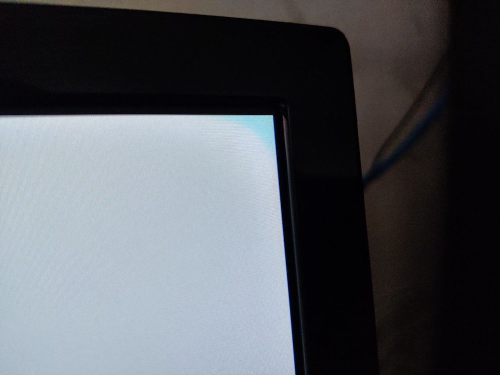 Причем появилась в правом верхнем углу и в левом верхнем, но в левом совсем чуть чуть, практически не видно вообще, но на темном экране еле еле видно.