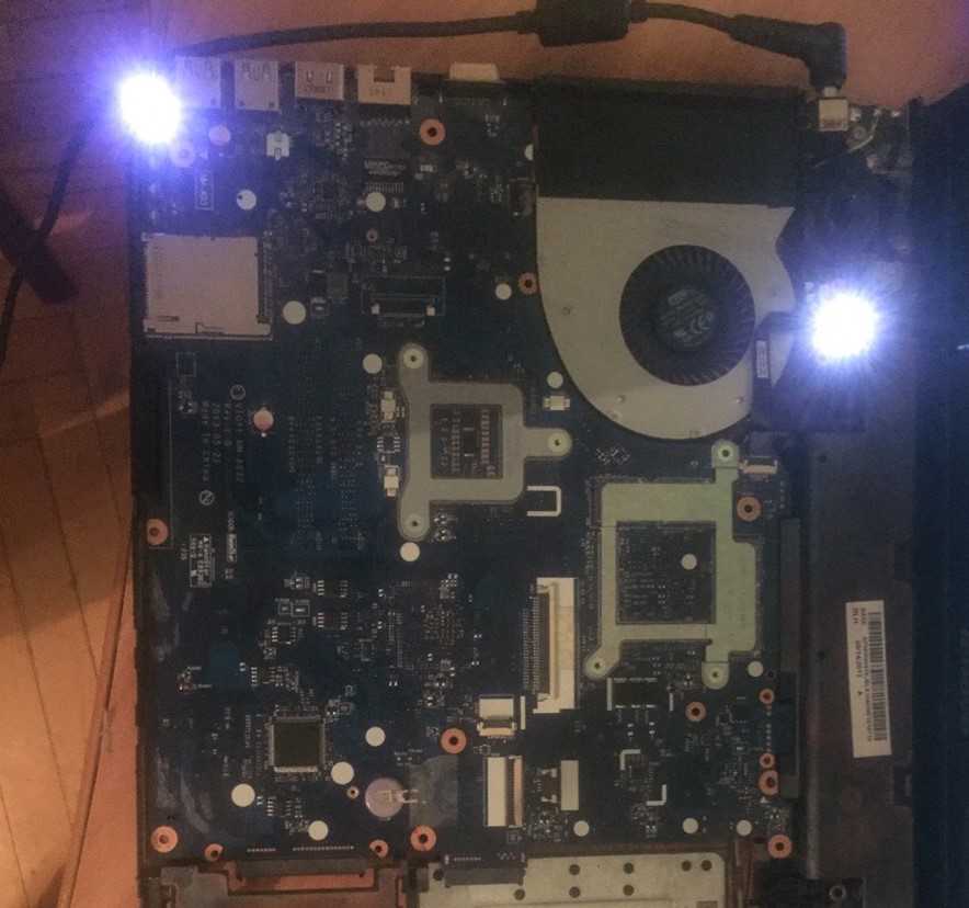 Ноутбук перестал включаться, причем подключаешь с аккумулятором, индикатор заряда мигает, нажимаешь на кнопку включения она загорается но материнка не стартует и винты не крутятся, загорается просто питание (см на фото). Мудрить пока не стал решил на форум написать, вдруг была у кого такая проблема. Подскажите пожалуйста в чем беда может быть, как выявили и как решали?