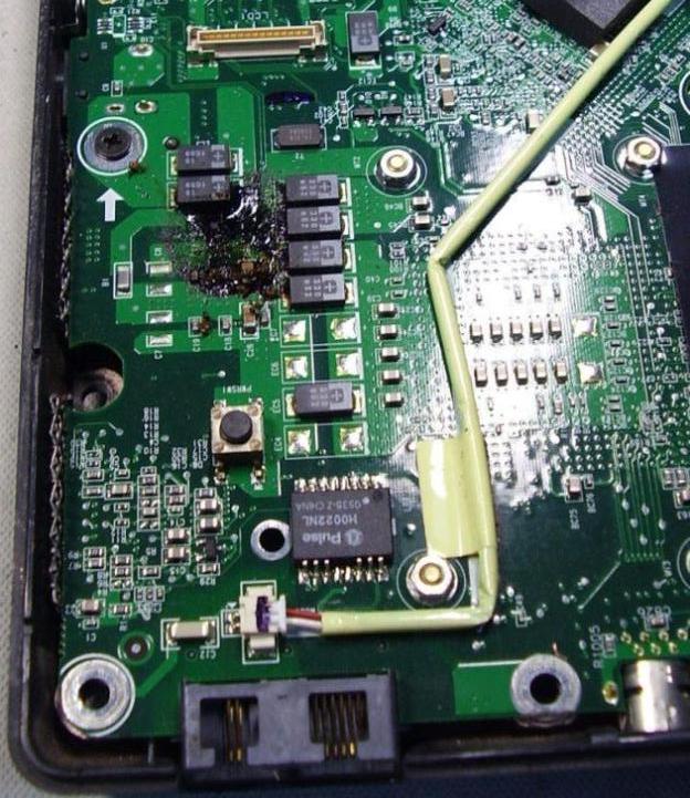 Оказывается, некоторые детальки НЕПЛОТНО прилегают к маме, кофе затек под них, высох-скоксовался и под током обуглился.