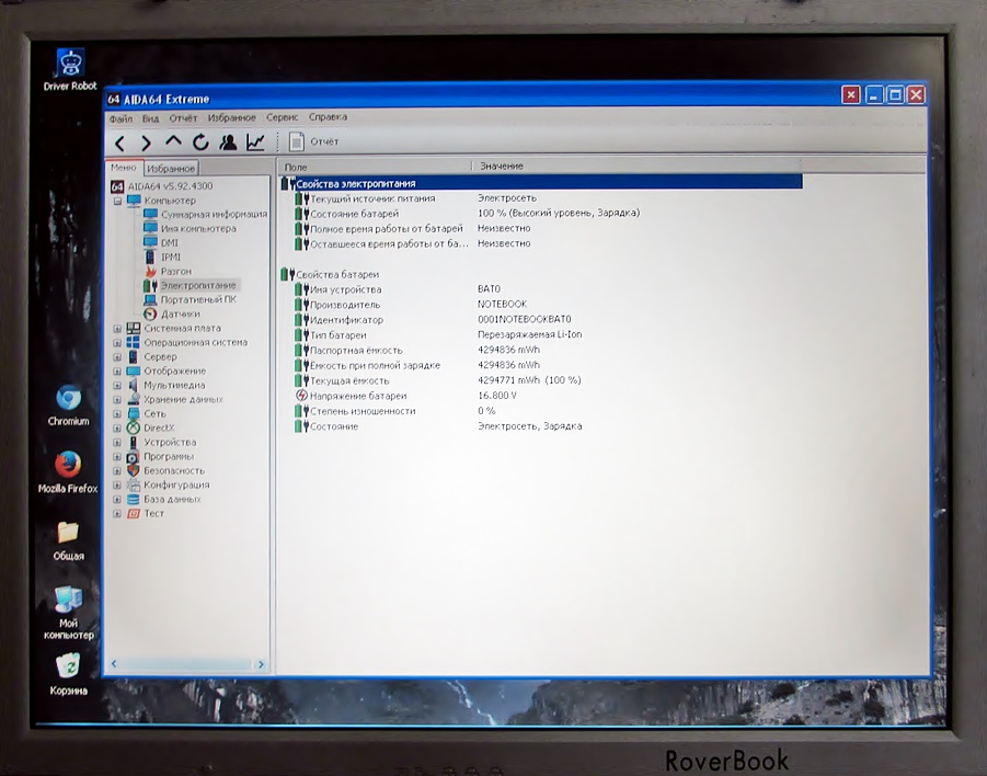 Отправил батарею своему внуку в Санкт-Петербург, он отнёс её в сервисную мастерскую, батарею приняли к производству взяв с меня обязательства, что не буду предъявлять никаких претензий, чего я и сделал (по телефону) - через неделю внук батарею отправил обратно. Ремонт батареи обошёлся вместе с заменой и монтажом банок 1900 рублей (оплатил после установки батареи в ноутбук. Но к большому сожалению батарея штатно не работает. На последних двух фотографиях AIDA64 видны показания батареи 100%, но только на пару мгновений, после того как правой клавишей кликаю на свойства электропитания, и обновить. После этого пролетают два мгновения, и снова показывает "нет батареи"... Отправил видео отчёт в сервисный центр, и они сразу предложили вернуть мне деньги ( в случае если я им верну банки), но я ведь обещал, что всю ответственность взял на себя, и конечно же отказался от возврата... Ещё мне сказали уже в нашем сервисе, что всё-таки нужно попробовать обновить BIOS и он может запустить контроллер батареи в штатном режиме. Ноутбук работал без батареи с 2006 года, может быть сбой в BIOSe произошёл по этой причине (он как-то странно работает - показания разнятся)... Пока нет мастера по железу (на больничном, а в другие сервисы не хожу) жду, сам не полезу...