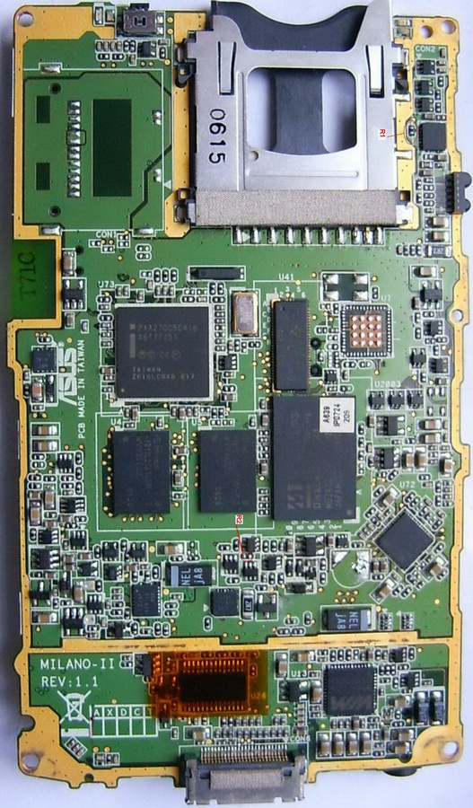 Смотрел кучу сервис мануалов, полных схем нет а только куски где картоприемник и его питание а куда и откуда идут сигналы нет. По плате больше никуда не звонится или обрыв внутренних слоев или управляет процессор PXA270, а он BGA на контрольные точки возле него не прозванивается.