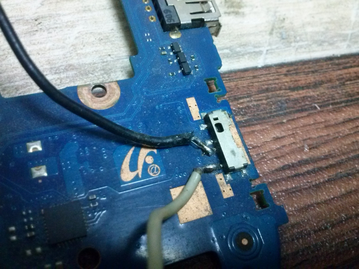 Оригинальная "кнопка" питания была сломана и хозяин пытался восстановить её сам, но у него что то не получилось.