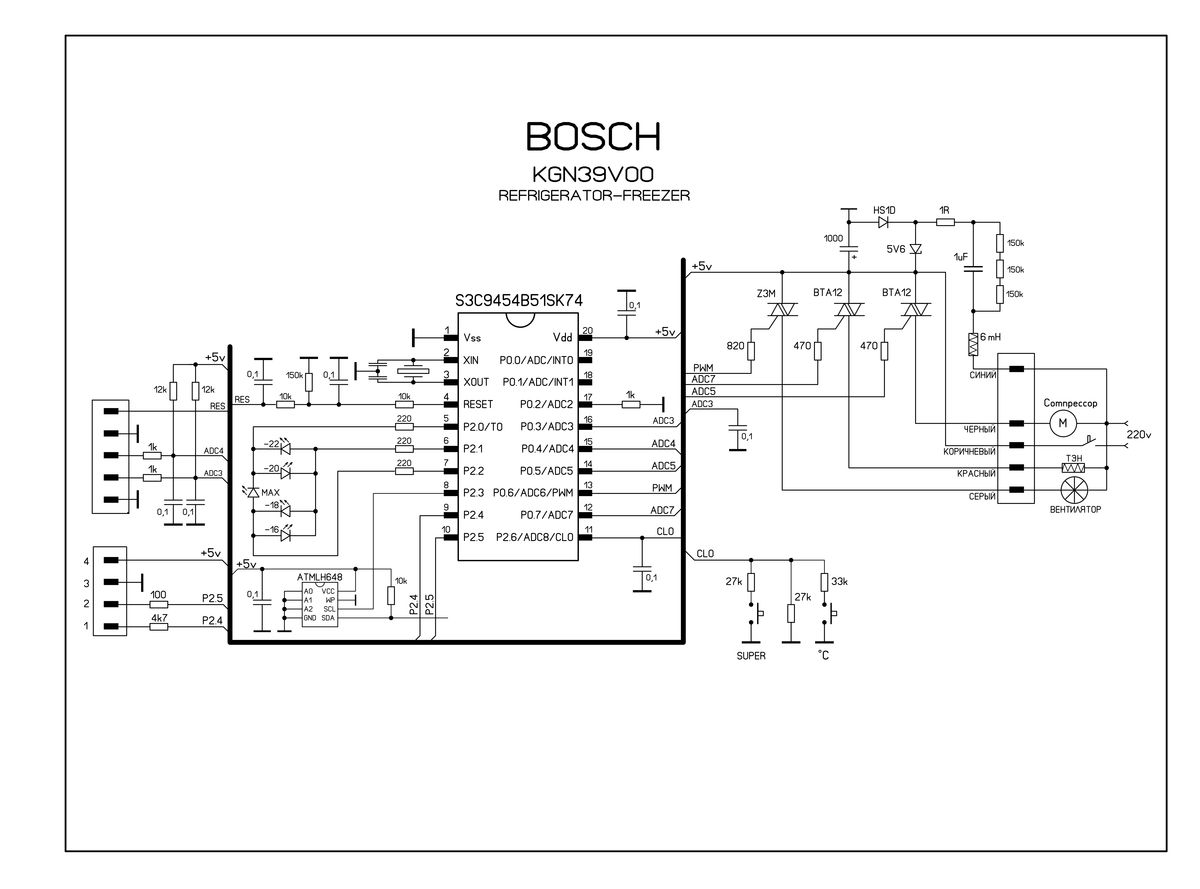BOSCH KGN39V00 Плата управления. На схеме BOSCH не все соединения проведены
