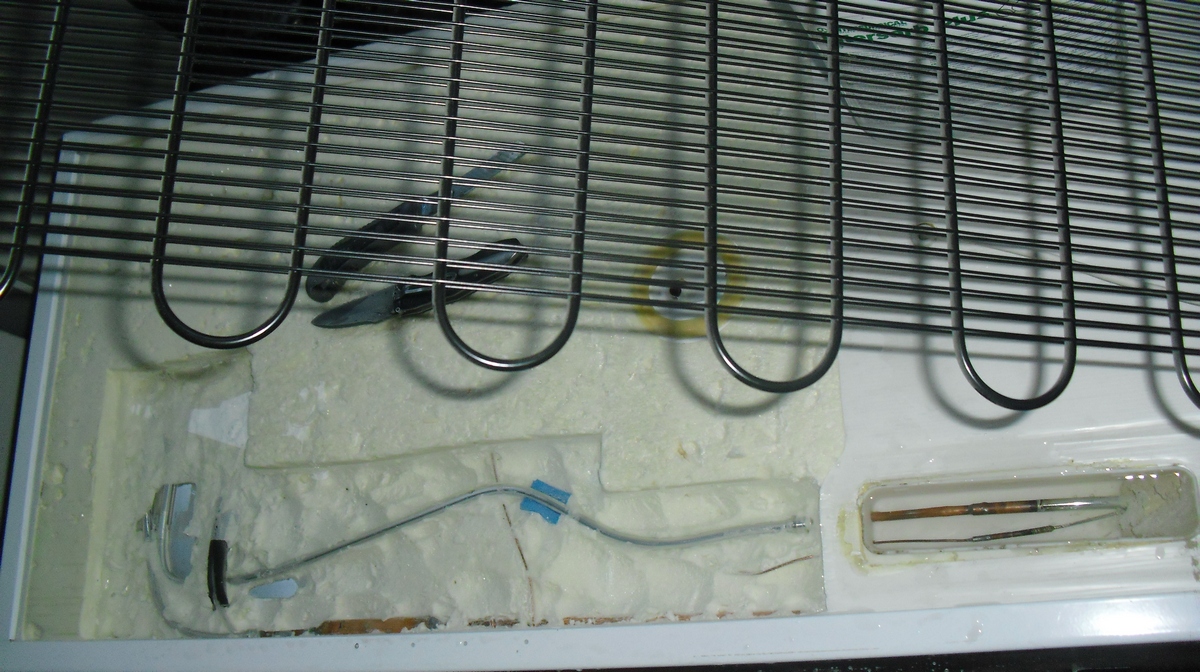 В следующий раз не буду резать весь холодильник, а в верхнем правом углу вырежу квадрат, и от туда пущу обратку по воздуху. В утеплителе естественно!