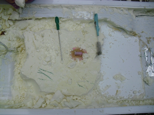 Возвращаемся к Liebherr. Около года назад уже делали дыру на испарителе. Запаяли в трех местах и сверху покрыли карандашом. Карандаш отлетел, запенили паршиво, одно стекло даже нож не берет. Думал дыра опять там же, ан нет, новом месте чуть ниже по-течению. Если кто батоном хочет бросаться, сразу скажу не мой косяк. Я белыми листами полистирола закрываюсь, если че. Компрессор похоже уже готов, останавливается с лязгом металла. Вот так сделаешь, а там новая дыра и компресор- минное поле с пчелами.