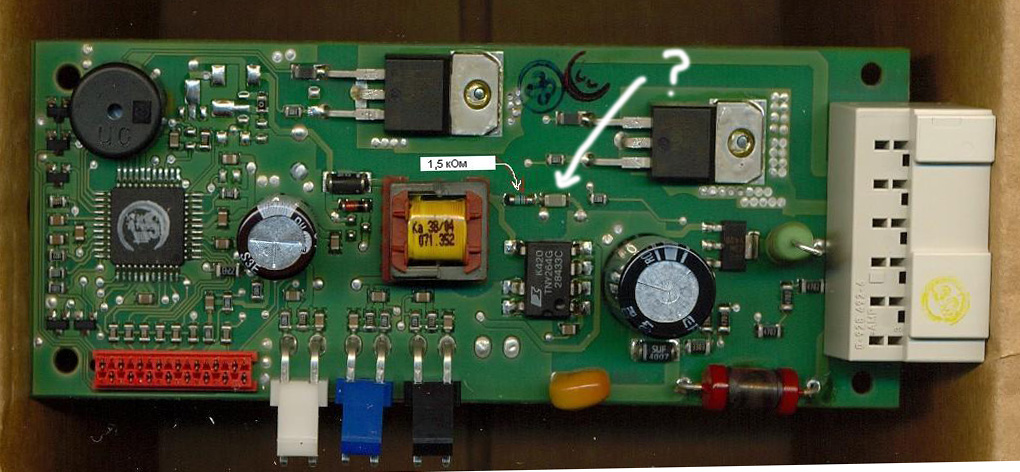 На плате выгорели 2 элемента, помогите опознать. Прикладываю фото взятое в одной из тем форума. Моя плата такая же. Резистор там отмечен, рядом с ним конденсатор. Хотелось бы его опознать.
