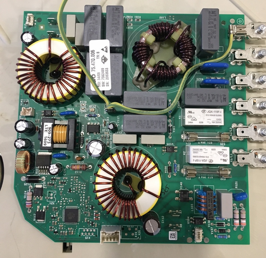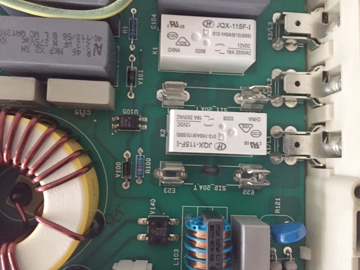 изначально был сгоревший предохранитель (видно на фото нагар) который шел через реле на одну силовую плату. на ней же сгорели мост и одно плечо из двух IXYS-ов. плита показывала FE 35.