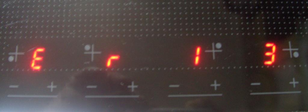 Попала в ремонт варочная панель, после подачи питания через 5 сек выдаёт ошибку ER13. на включение реагирует (загорается светодиод питание на 0,5 сек и сразу тухнет) ошибка продолжает моргать.