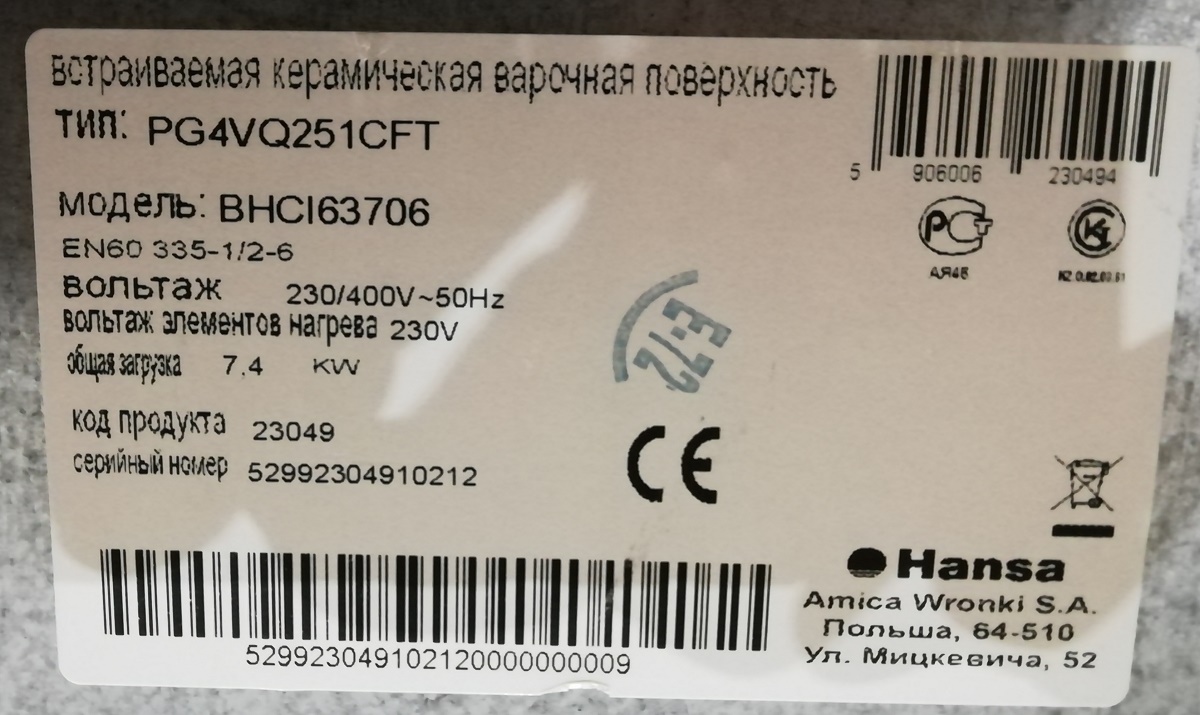 День добрый. Индукционная варочная поверхность Ariston KIS 644 DD Z . Cod 257 44 330000. СПб и Лен. обл.