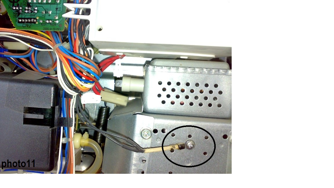 Осталась последняя задача, поменять термодатчик, по внешним данным, это терморезистор, который прикручивается сбоку на магнетрон. Если закоротить датчик, то микроволновка работает!