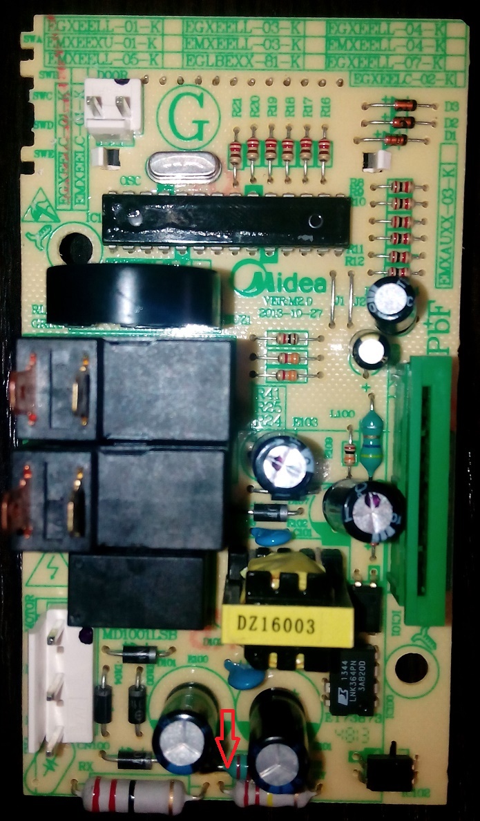| не могли бы Вы посмотреть(поскольку сняли плату),номинал SMD-резистора R-107,он в этом же месте,но с другой стороны платы.у меня полностью выгорел,а схемы нигде нет.спасибо. |