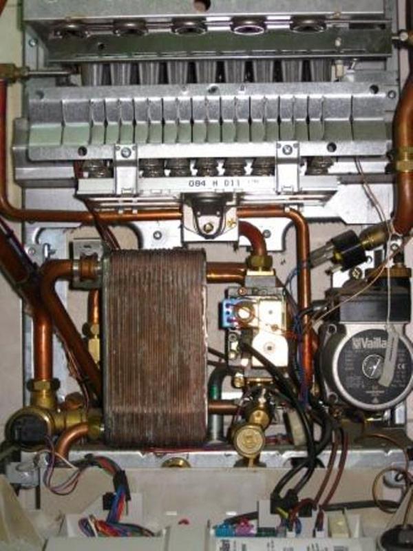 Недавно ходили ремонтировать такой-же апарат, только дымоходник. По описанию клиента котел после розжига начинал сильно тарахтеть а потом подпрыгивал на кронштейнах. Причина: забитая наглухо трубка охлаждения горелок. Подключались непосредственно к ней и мыли со всеми пристрастиями и таки отмыли. Только механическим способом не чистили. Хотя было желание засунуть туда трос.