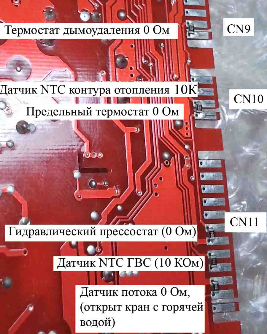 | Котёл не турбо. После установки платы включился и бесконечно гонял воду насосом, газ не пускал и не зажигал. После снятия перемычки CN9 (4,5) заработал. Таким образом: без установки коротыша cn9 (4,5) мне не удалось вывести плату из аварии. Вот такой вот странный случай. Сейчас всё гут. |