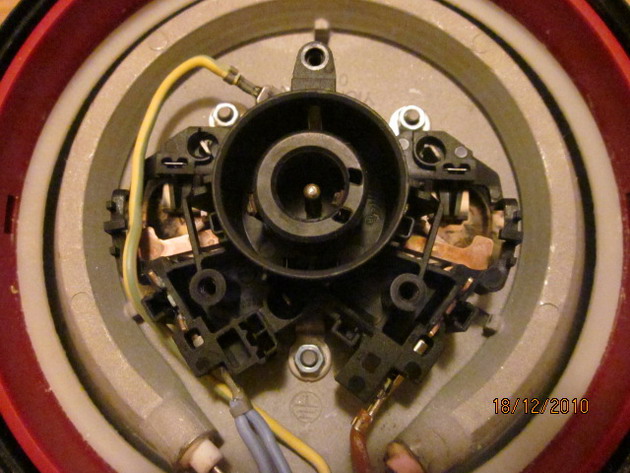 Открути три гайки, сними контактную группу, вынь обе круглые