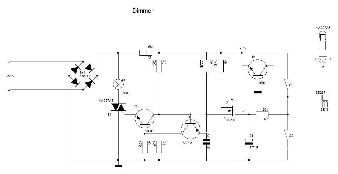 Есть лампа с регулятором освещения. В схеме есть полевой транзистор SS297. Может кто подскажет аналог вместо него?! Плата в лампе под номером SL-118C, а вот и схема.