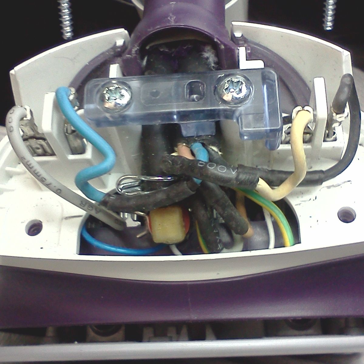 Разобрал "жопу" утюга, там во всех (!!!) проводах сломаны медные жилки (передавила прижимная планка).