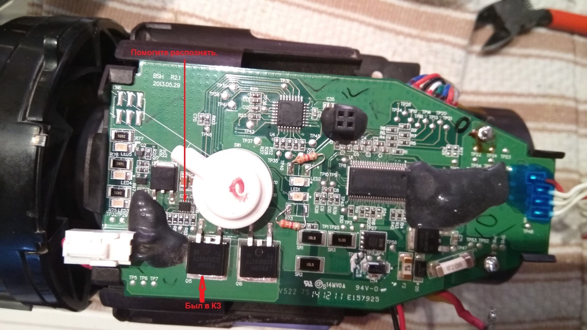 Перепаял транзистор и теперь при подключению мотора он сомопроизвольно не запускается, но и нет запуска с кнопки вкл. При включении пылесоса загораются два синих светодиода.