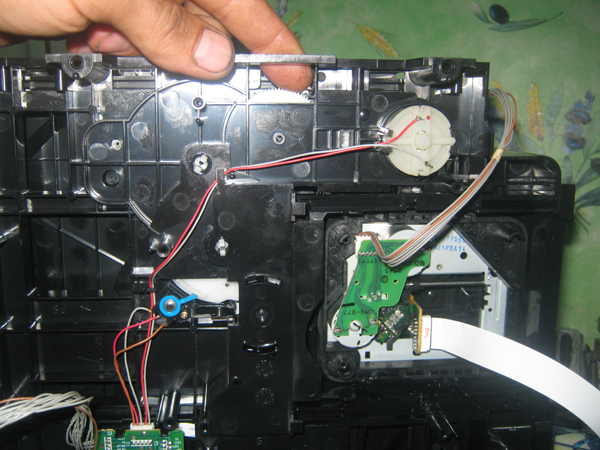 | Вот так он задвигает лоток и встает, пасик не причем мотор перестает работать , синенький рычаг микрик встает в среднее положение. | |