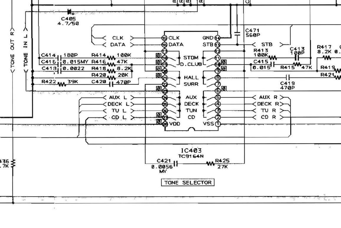 Коммутатор выполнен на микросхеме Toshiba TC9164N, управляется микроконтроллером.