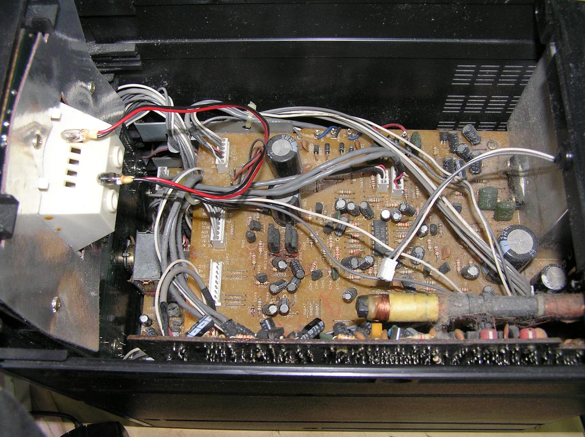 Оказывается, всё просто! Снимаешь только верхнюю крышку с магнитофонной панелью, и открывается доступ. Там 2 лампочки в пластиковых голубых чехлах. Одна из них потемнела, другая не потемнела. Питание каждой почему-то раздельное. На контакте потемневшей 13 В, а на контакте другой нет напряжения. Попробовать влепить китайскую понижайку, и присобачить светодиоды?