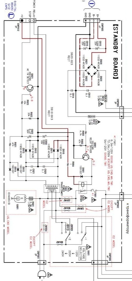 Управляется данная схема сигналом из платы процессора сигналом Power Relay ( в режиме ожидания там ноль, при нажатии кнопки включения сигнал не меняется)