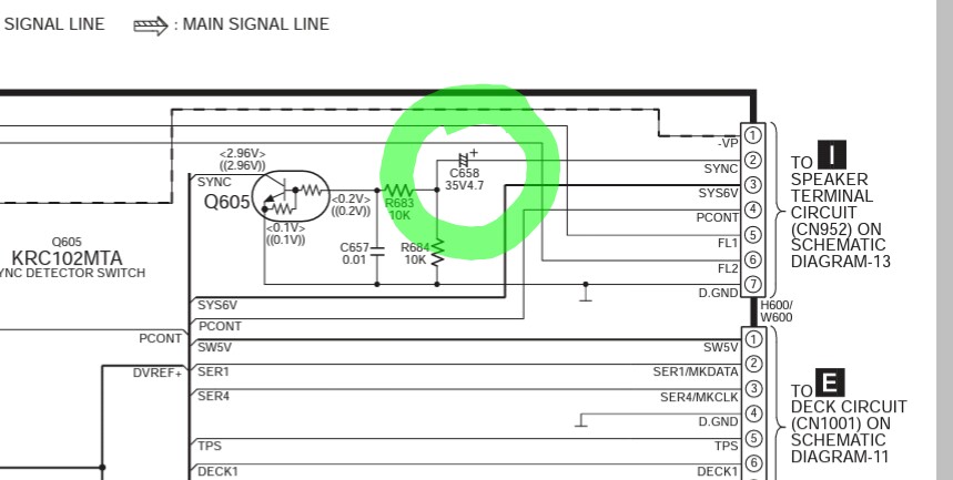 | аппарат Kenwood krc-157e - не включается. После изучения схемы и проверки цепей питания нашел оборванный резистор 47кОм и стабилитрон с утечкой в цепи АСС. После замены работоспособность полностью восстановилась. |