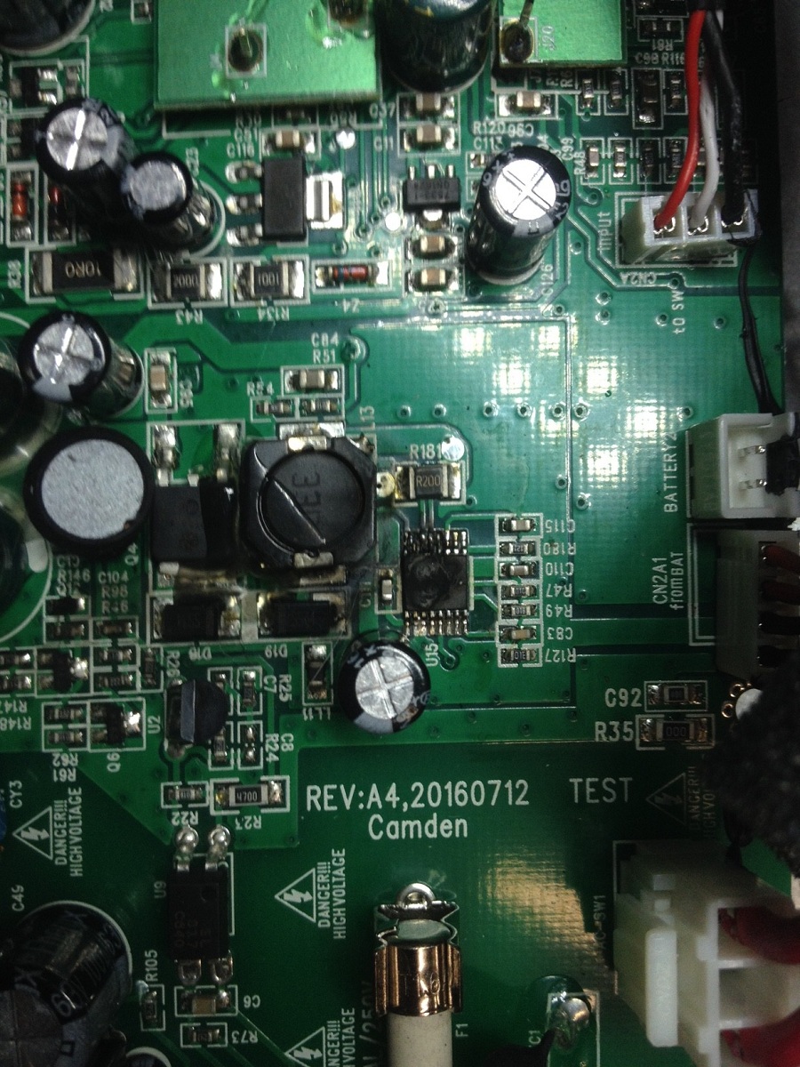 При вскрытии увидел пробитую напрочь микросхему. обозначение не читабельно.