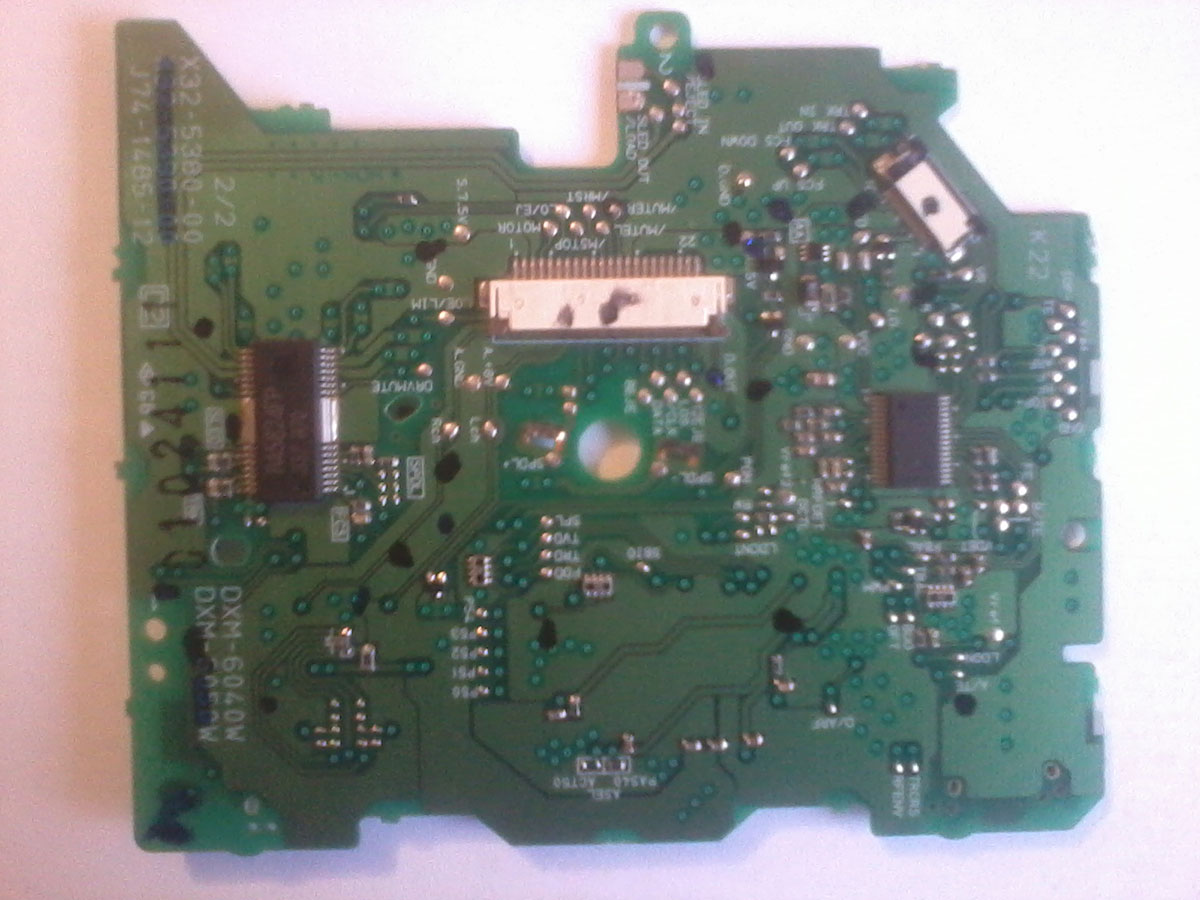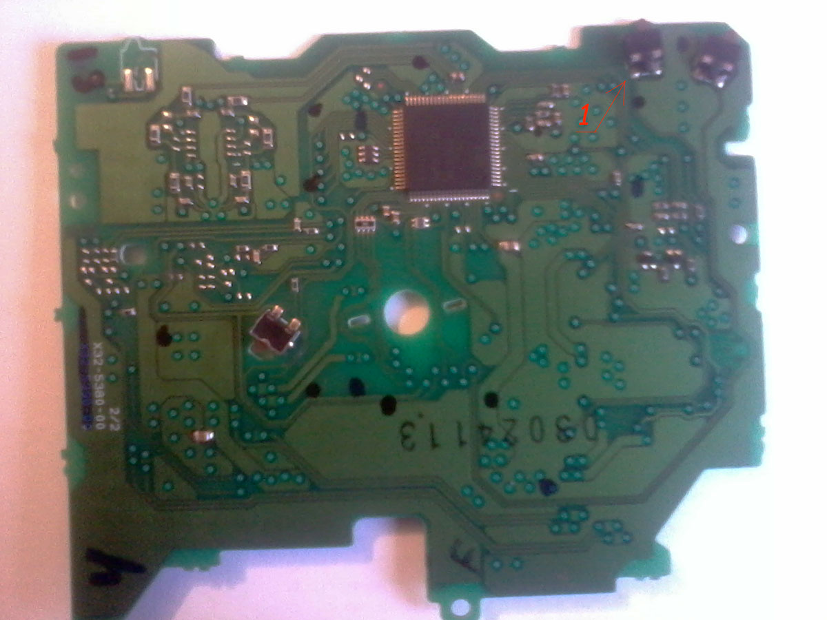 Там где стрелочка "1" показывает на концевик при нажатии на него магнитофон проверяет наличие диска и выдает ошибку e-99 это я погуглил и это означает, что нету диска, не может считать диск, во общем что то такое.В моем случае и должно так быть, механизм считывания то отсутствует, вот теперь нужно понять какие контакты нужно замкнуть или что то сделать что бы он подумал что там есть диск.