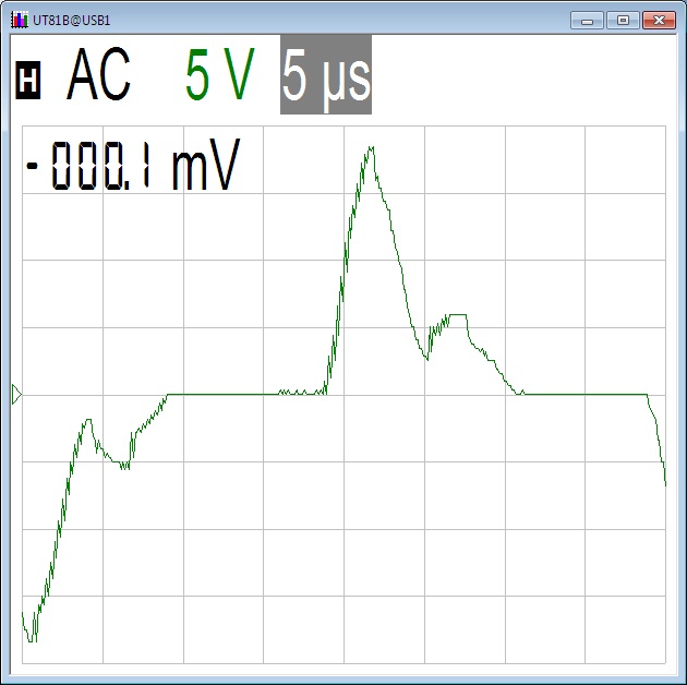 Сигнал на делителе при указанных настройках выглядит как короткие импульсы.