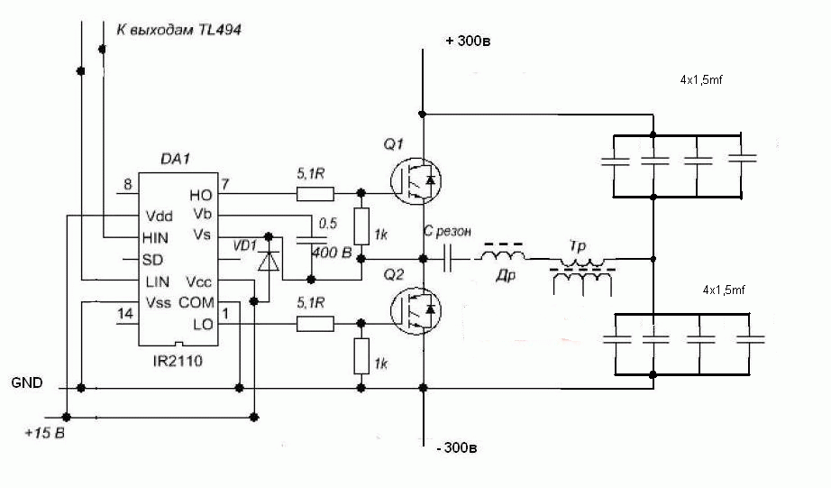Возник вопрос по силе на IR2110 ; Все пишут ,что надо ставить 1.5КЕ400СА и на затворы Кс213 , а в схеме нет. Как быть?