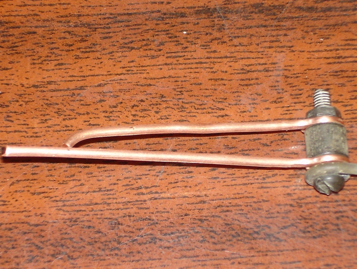 Хочу предложить Вашему вниманию конструкцию жала для импульсных паяльников. Устройство понятно из фото. Материал- медный провод 1.8-2 мм.