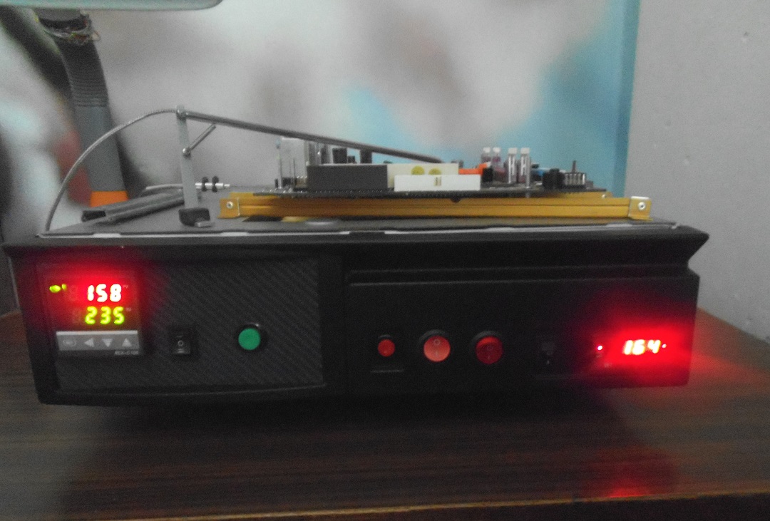 Доработал свою паялку по методу Krievs на пидах. Добавил контроль напряжения на верхнем нагревателе. Принудительное включение низа , верха на 1 ступени (аларме) (100-200град.) + регулятор напряжения верха для 1 ступени. (в моей паялке на 2 ступени 200-230град. на верх подается все сетевое напряжение). Также понизил напряжение включение 1 ступени верха до 100град.