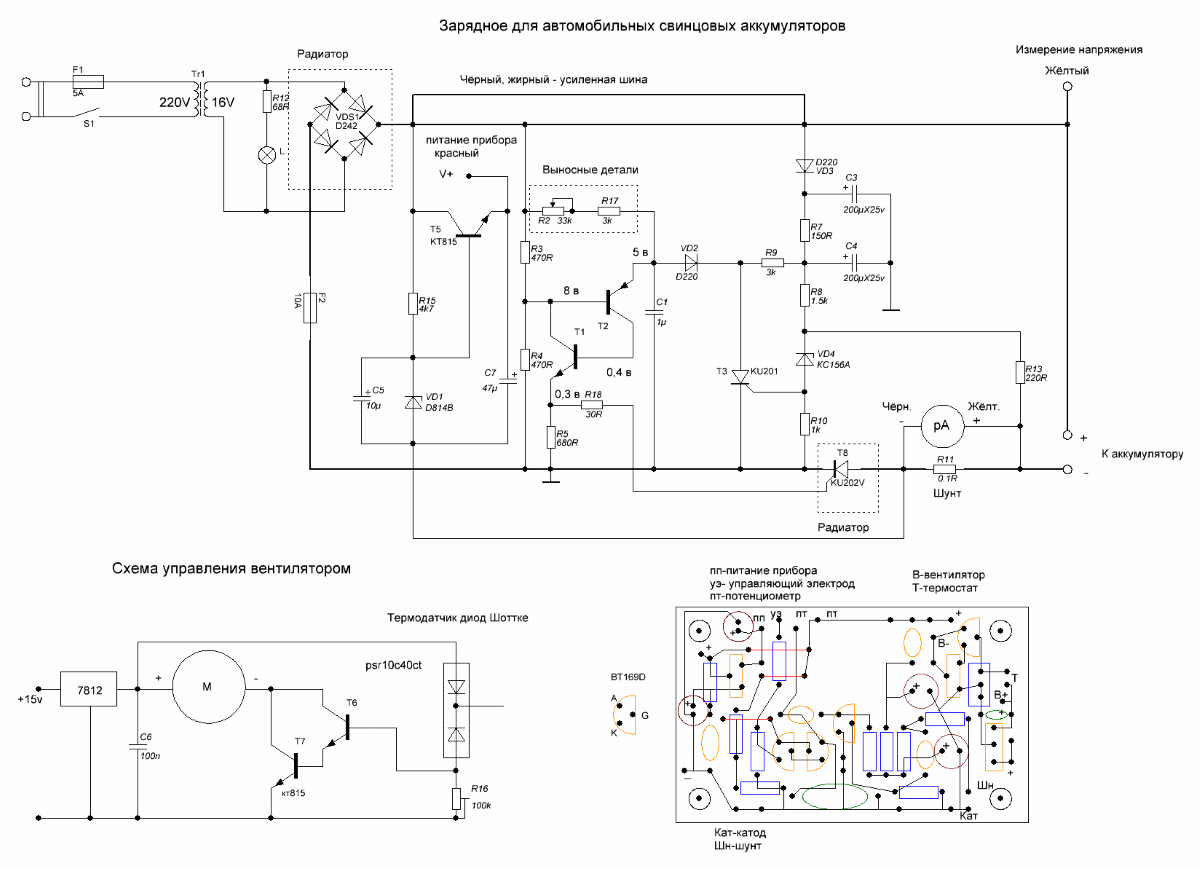 | Транзисторы греются слишком. Задумка в регулировании именно тиристорами в составе выпрямительного моста. Питатель нужен с выходной мощью от 3а. Шим не устраивает ,не надежно по кз. Кз -неизбежно, использование очень не аккуратное. Нагрузки разные, аккумавто, зарядка лиферов, шурупники. |