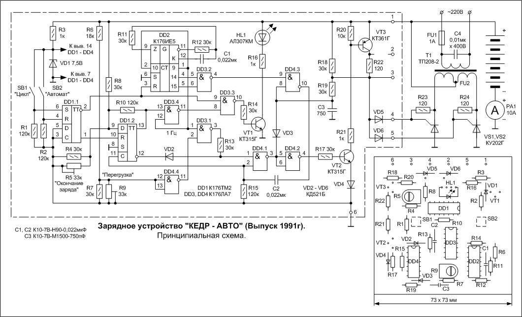Заряжал акб КЕДР -АВТО 12В, отличное устройство.. буду себе собирать такое ЗУ. В архиве инструкция , схемы и печатки плат