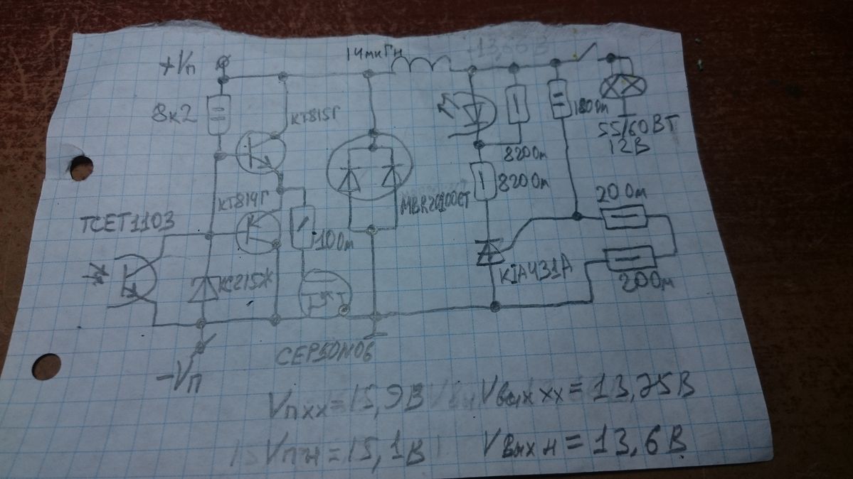 Rom-Zecs, пока не знаю, как лучше сделать. Надо на аккум до 14.3В зимой чтоб приходило, а бортовое всегда не выше 12.6В чтоб было... замучился я лампочки менять! А эти китайские подделки - шунтирующие РР - как мухи дохнут: то на аккум до 18В приходит, то зарядка пропадает. Уж штук пять сменил. Надо самому сделать и не мучится больше.
