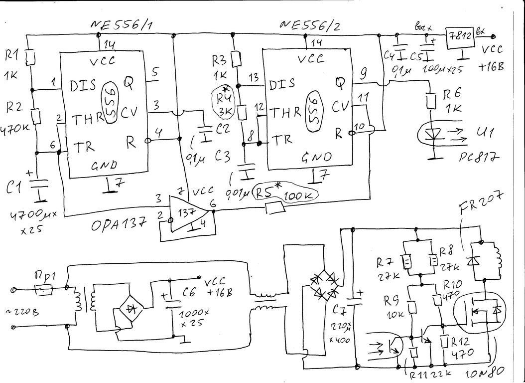 Нашёл на форумах сайтов схему самого последнего генератора Райфа на лампах