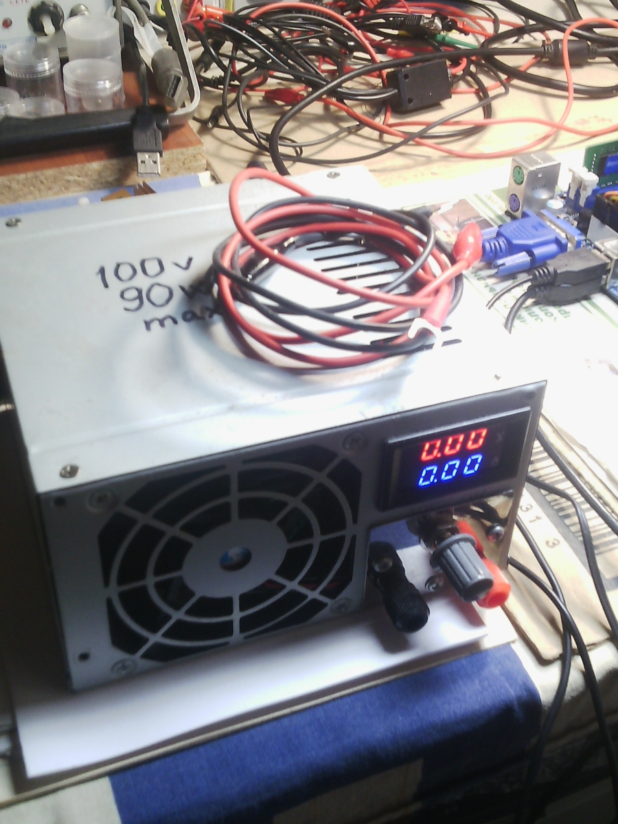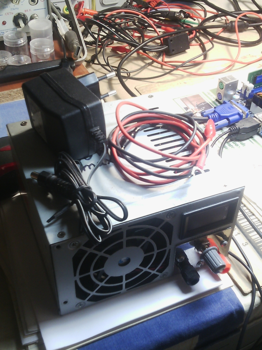 испытуемый блок питания, индикатор показывает текущее напряжение