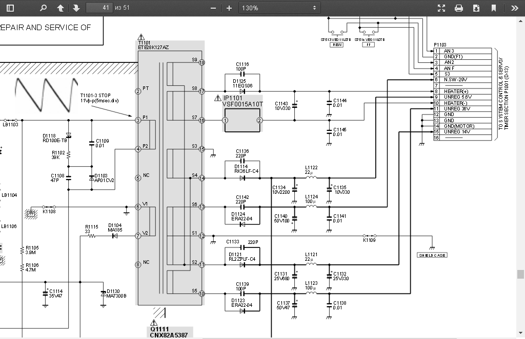 есть видеомагнитофон panasonic nv-fj610. решил использовать его корпус под свои нужды вместе с его бп. и найдя схему, как правило сверил выходное напряжение по пинам.