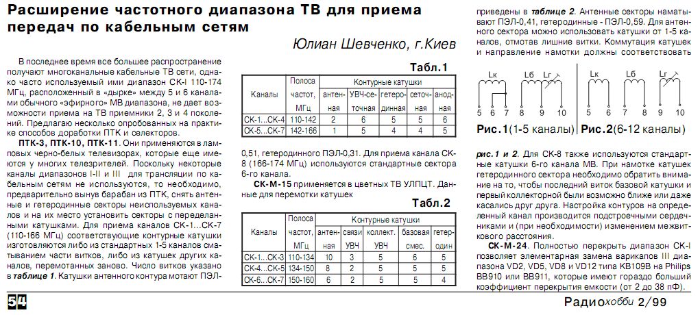 Нашел статью в журнале Радиохобби 1999/02 стр. 54 в которой автор предлагает в СК-М-24 заменить 4 варикапа третьего диапазона КВ109В на импортные BB910 или BB911 для перекрытия диапазона CK-1 (110-174 MHz). У местного кабельного оператора в этом диапазоне транслируется 8 каналов и еще один на частоте 175 MHz, который тоже должен попасть в диапазон приема после доработки.