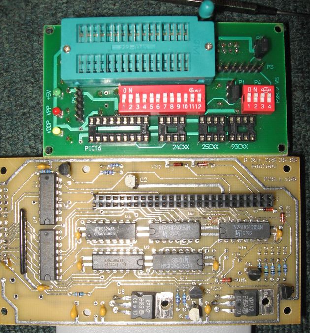 Если кому не понятно - маленькая зеленая платка насаживается сверху на большую (даже эротично выразился) А так это точно Willem и ПО от него в комплекте и по микрухам и джамперам полный совпад, просто его на 2 части "распилили" чтобы в меньший корпус затолкать, RS232 использован как разъем питания, LPT кабель длинный ок 1,5м и впаян в плату. Разработчики сказали что схема от Willem только точно от какого они уже не помнят. Сейчас они Wizard ваяют  |