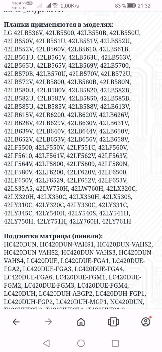 | Куплю комплект подсветки телевизора LG 42": 42" drt3.0 rev7 2 A-type 1sb-0396 и 42" drt3.0 rev7 2 B-type 1sb-0396. Рабочее напряжение одного светодиода 6В., общее напряжение одной пары 48В (24+24В каждой линейки) . Нужно 4 пари: 4 шт. – A type + 4 шт. – B type, ) (или качественный , проверенный аналог), комплект желательно новый, или б/у с гарантией. |