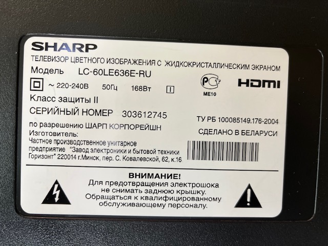 Куплю майн QPWBXF733WJN2 - KF733 - F73356 для SHARP LC-60LE636E-RU Panel: LK600D3GW4BH // JE600D3GV0DY LK600D3GV0DE