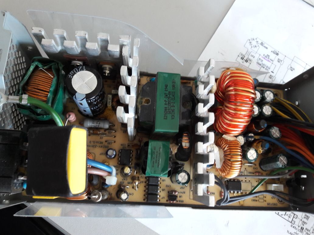 Имеется блок питания CWT DSI250P. При включении не подавал признаков жизни, высоковольтные транзисторы и диоды живые. Дежурка 5V, PS_ON 2,6V присутствует. Поменял ШИМ CM6805 и пару смд транзисторов в цепи питания ШИМ, БП начал подавать признаки жизни. При включении дергает вентилятором и усе, как будто уходит в защиту. Начал разбираться во вторичке, вышел на супервизор PS113. Поставил аналог TPS3510. Начал запускаться, но при этом вентилятор крутится не в полную силу, напряжения в норме в районе 30 секунд, потом постепенно начинает просаживаться +12В, -12В, -5В. Как только даю минимальную нагрузку, сразу уходит в защиту. Конденсаторы все менял. Что еще может быть - уже голову сломал. Схемы на данный аппарат так и не нашел, имеется ,близко похожая. Подскажите куда еще копнуть.